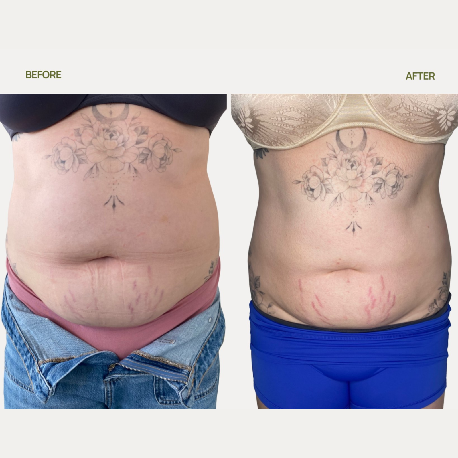 Ultrasound Body Contouring works best when performed in conjunction with Radio Frequency Skin Tightening Treatments. The radiofrequency energy enhances the results of Ultrasound Body Contouring and the skin tightening benefit is fantastic for addressing any skin laxity that may be of concern as the adipose tissue reduces in the treatment area.